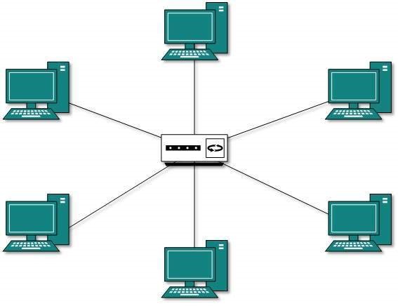 Mô hình mạng sao là mô hình mạng kết nối tới các thiết bị thông qua một bộ kết nối tập trung như Hub hoặc Switch.