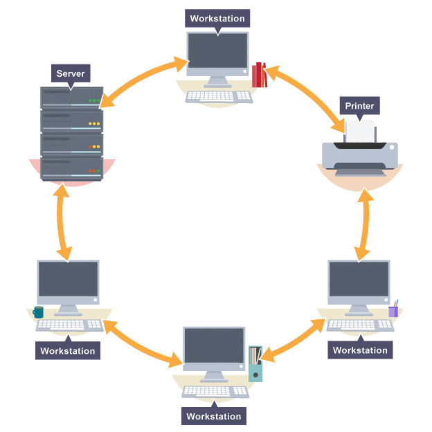 Về mặt Logic thì mô hình mạng Ring là một mô hình kết nối các thiết bị theo một vòng và chiều dữ liệu sẽ đi theo kim đồng hồ.