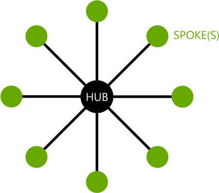 Mô hình mạng Hub & Spoke là mô hình mạng kết nối các khu vực mạng riêng biệt nhằm mục đích giảm các đường WAN thông qua các Sub-Interface của Router.